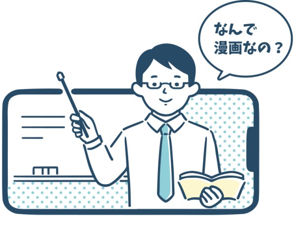 漫画のキャラクターが「親しみやすい塾」のイメージを作る